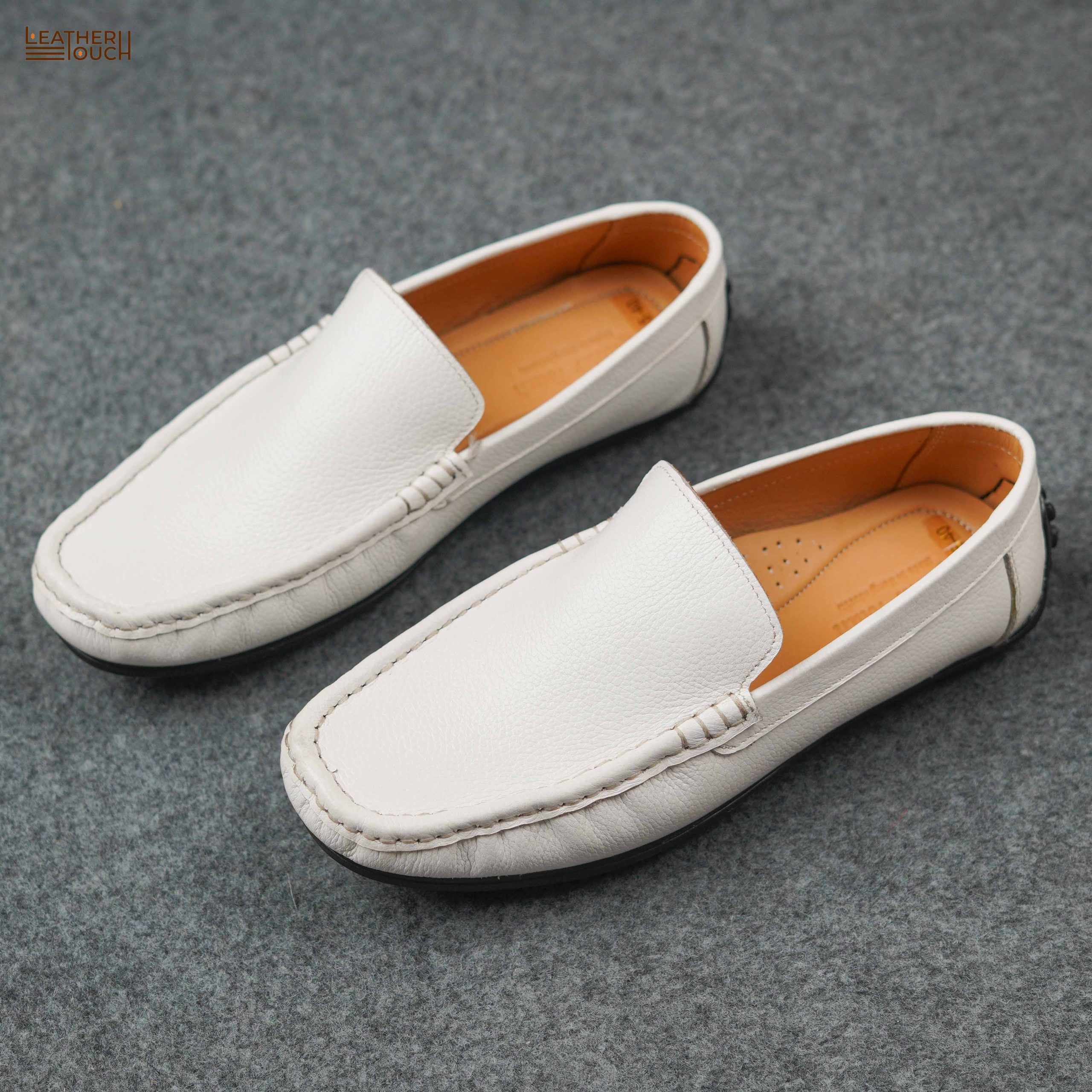 Premium White Leather Loafers